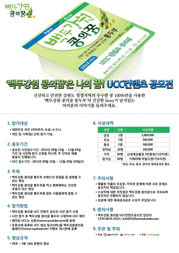 - 백두강원 콩의꿈 UCC 컨텐츠 공모전 사전 참가 신청