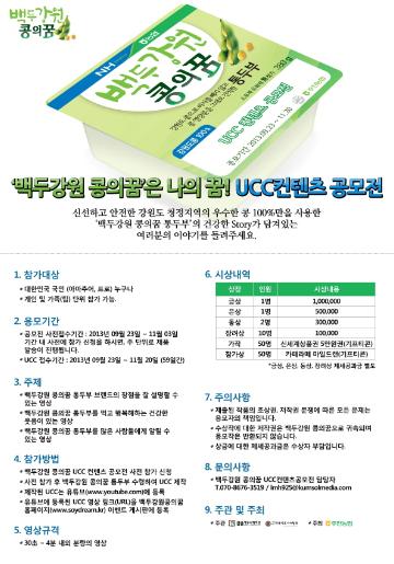 - 사전 참가 후 백두강원 콩의꿈 통두부 수령하여 UCC 제작