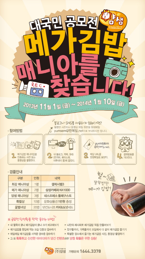 - 메가김밥을 좋아하시는 고객이라면 누구나 참여가능