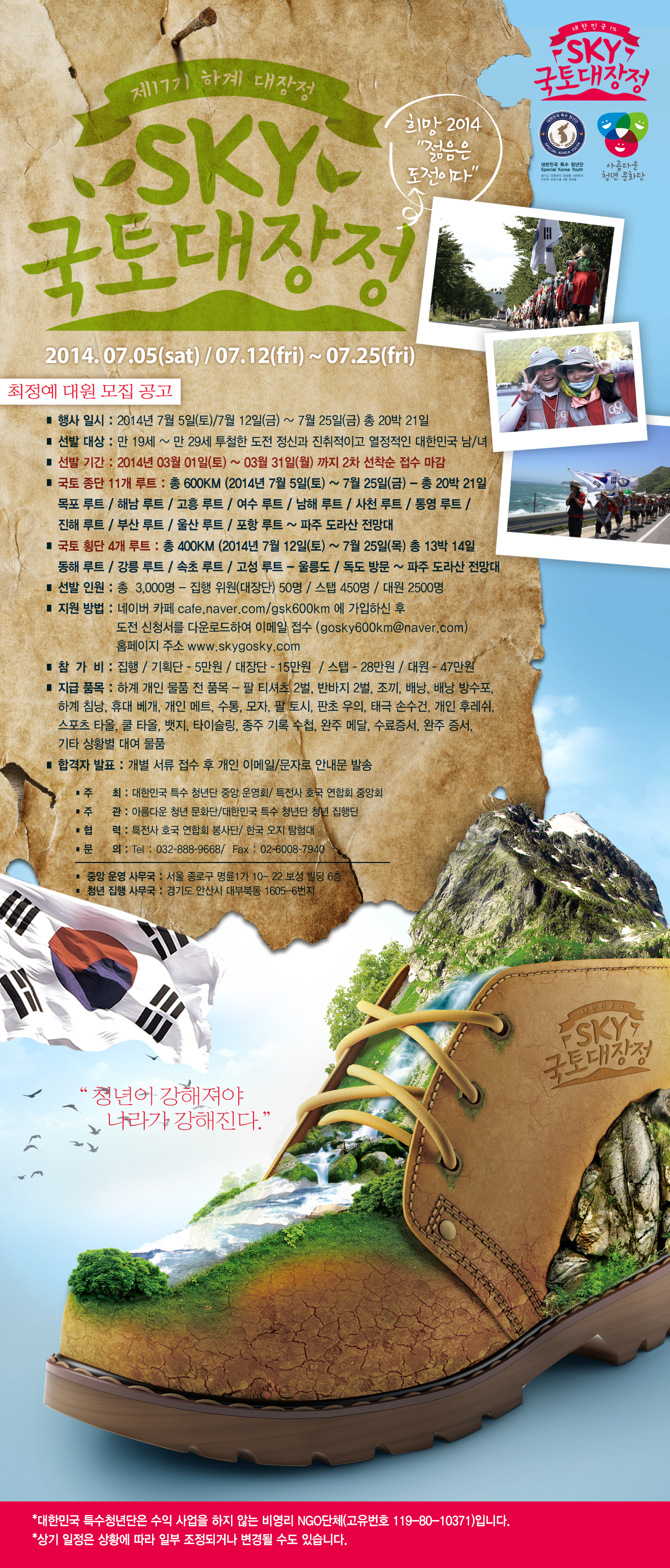희망 2014 "젊음은 도전이다" 제 17기 SKY 하계 국토 대장정 스탭 모집