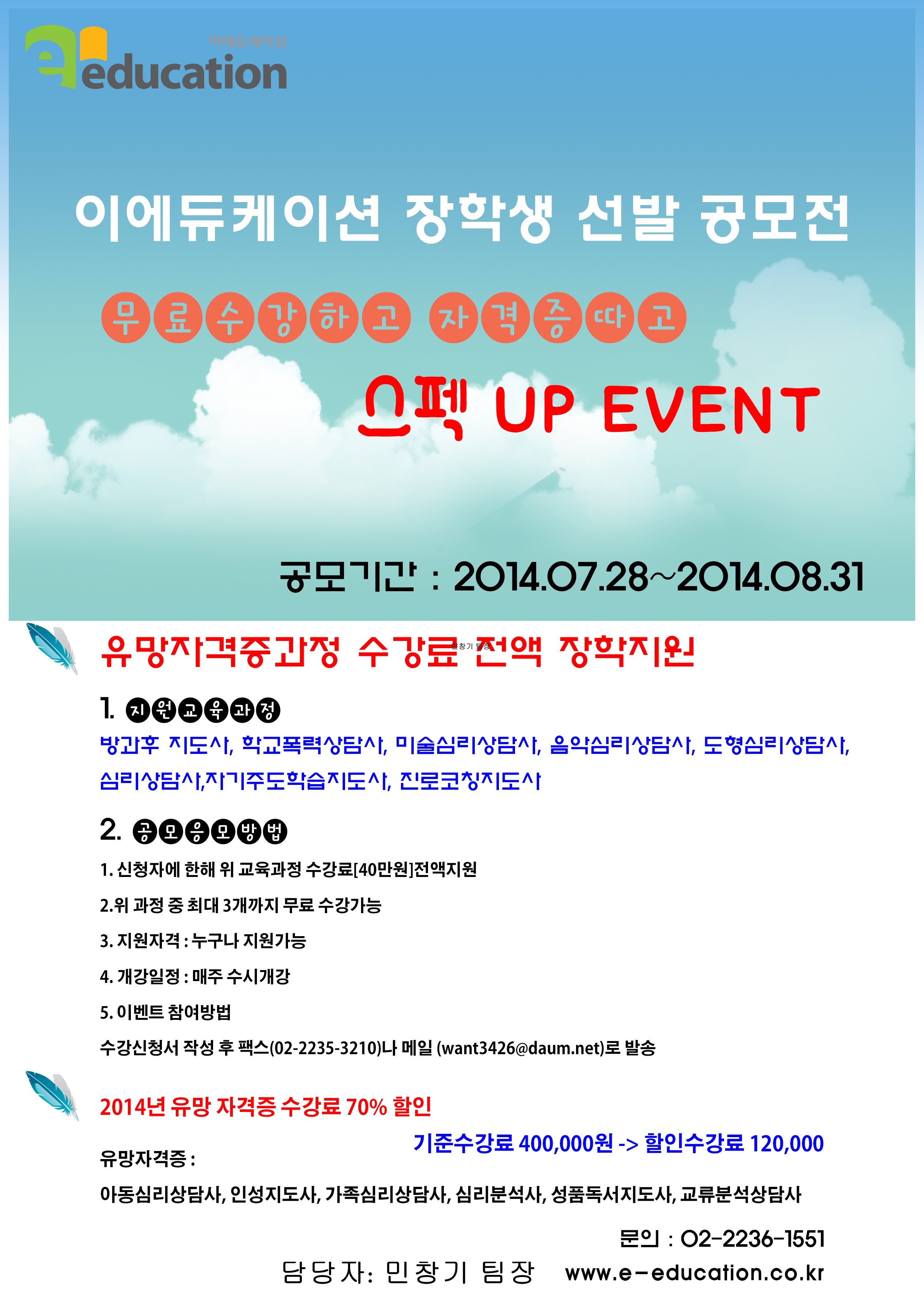 2014 e-에듀케이션 14과목 유망자격증 장학금전액지원 참가공모전