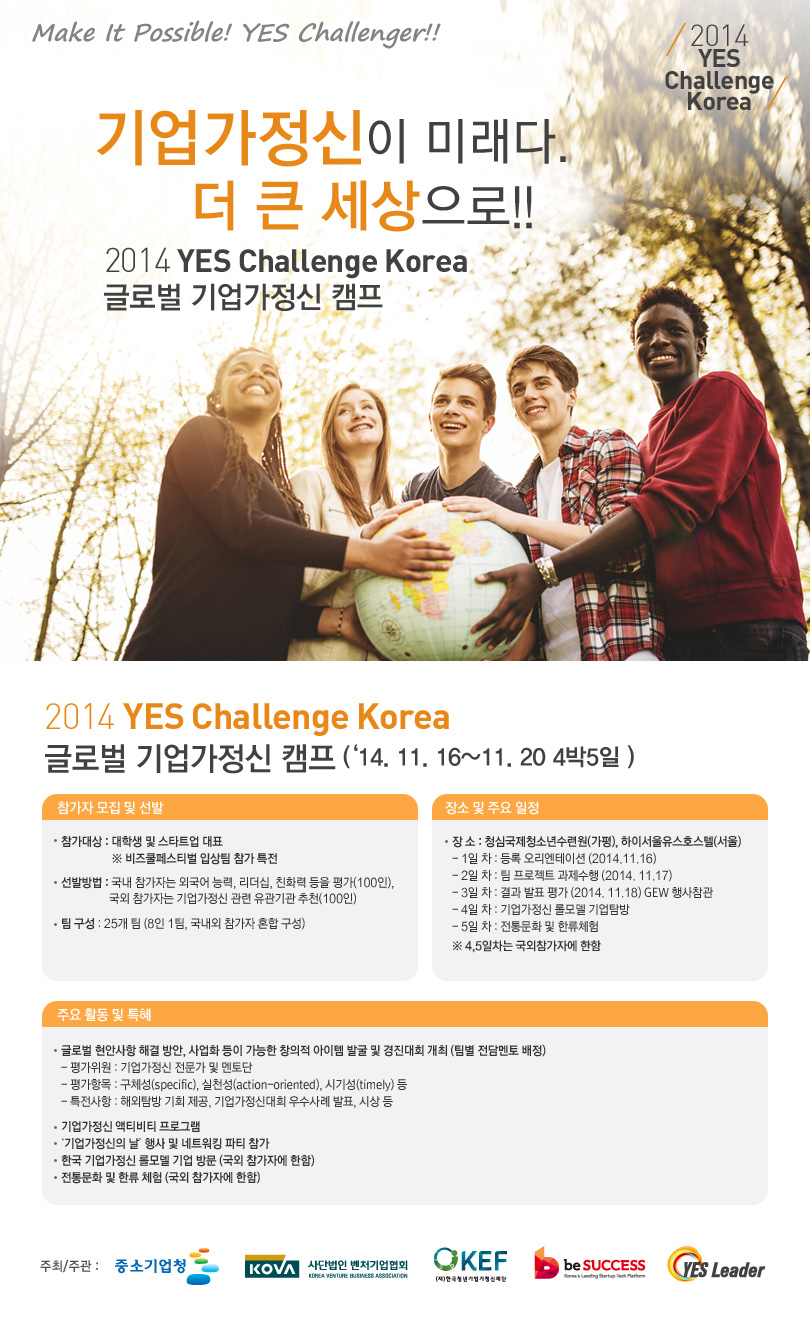 (관련기사 : http://besuccess.com/2014/09/2014-yes-challenge-korea/ )