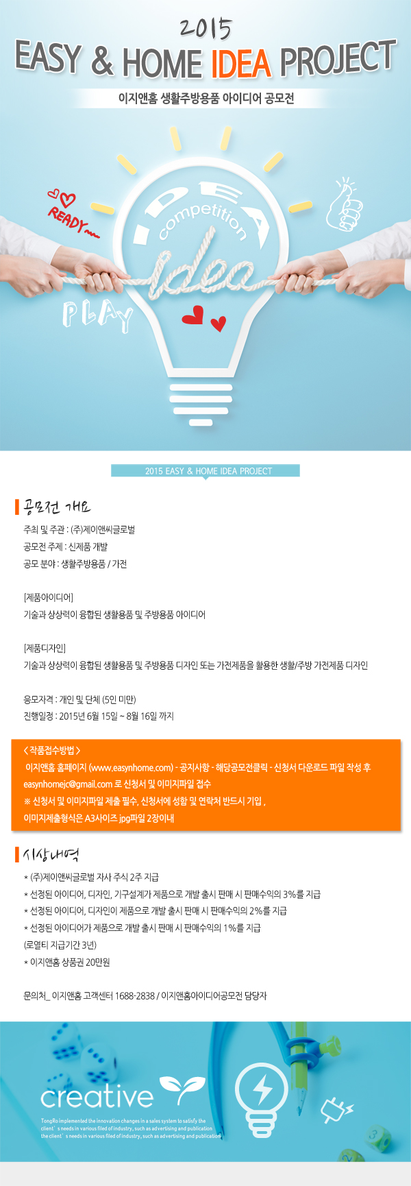 - 선정된 아이디어가 제품으로 개발 출시 판매 시 판매수익의 1%를 지급 (로열티 지급기간 3년)