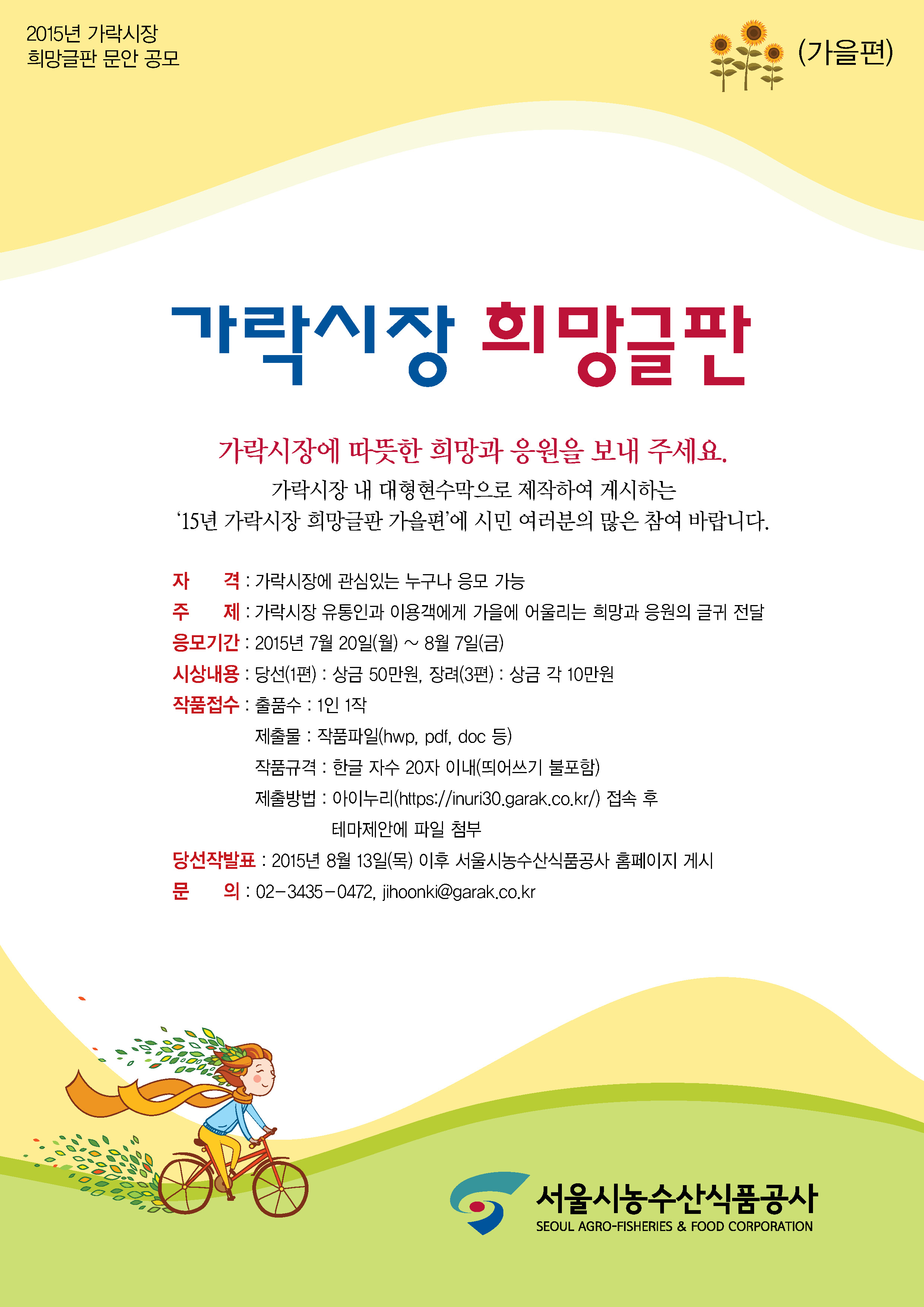 '15년 가락시장 희망글판 가을편' 에 시민 여러분의 많은 참여 바랍니다.