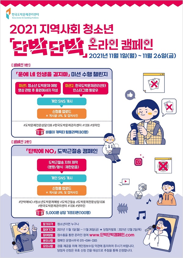 * 필수 해시태그: #단박에NO #청소년도박문제예방 #도박근절송