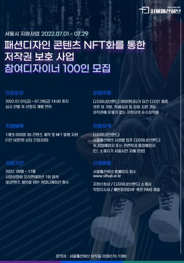 서울패션허브 홈페이지(sfhub.or.kr) - 알림마당 - 사업공고 - 창작뜰 'NFT지원사업' 신청 접수