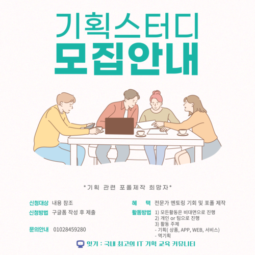 기획 공부의 커리큘럼이 있는 곳에서 스터디를 해보세요!