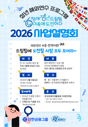 - 2026년 장애청년드림팀 신청시 가산점 부여(사후 설문조사까지 참여)