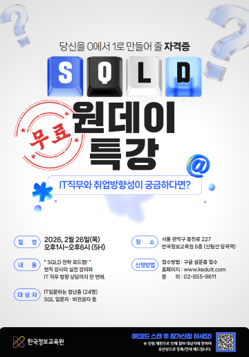 문의 : 한국정보교육원(바로가기) 02)855-9611, kyoungwon199@naver.com