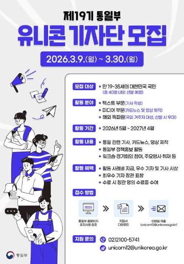 - 모집 대상 : 통일부 유니콘 기자단에서 열정적으로 활동할 만 19~35세의 대한민국 국민