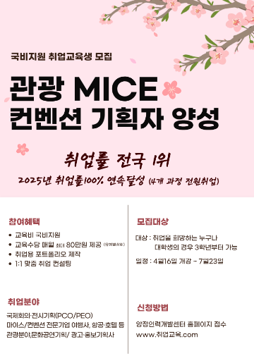 - 취업유망직종 관광MICE 분야로 취업하고 싶으신 분 환영!