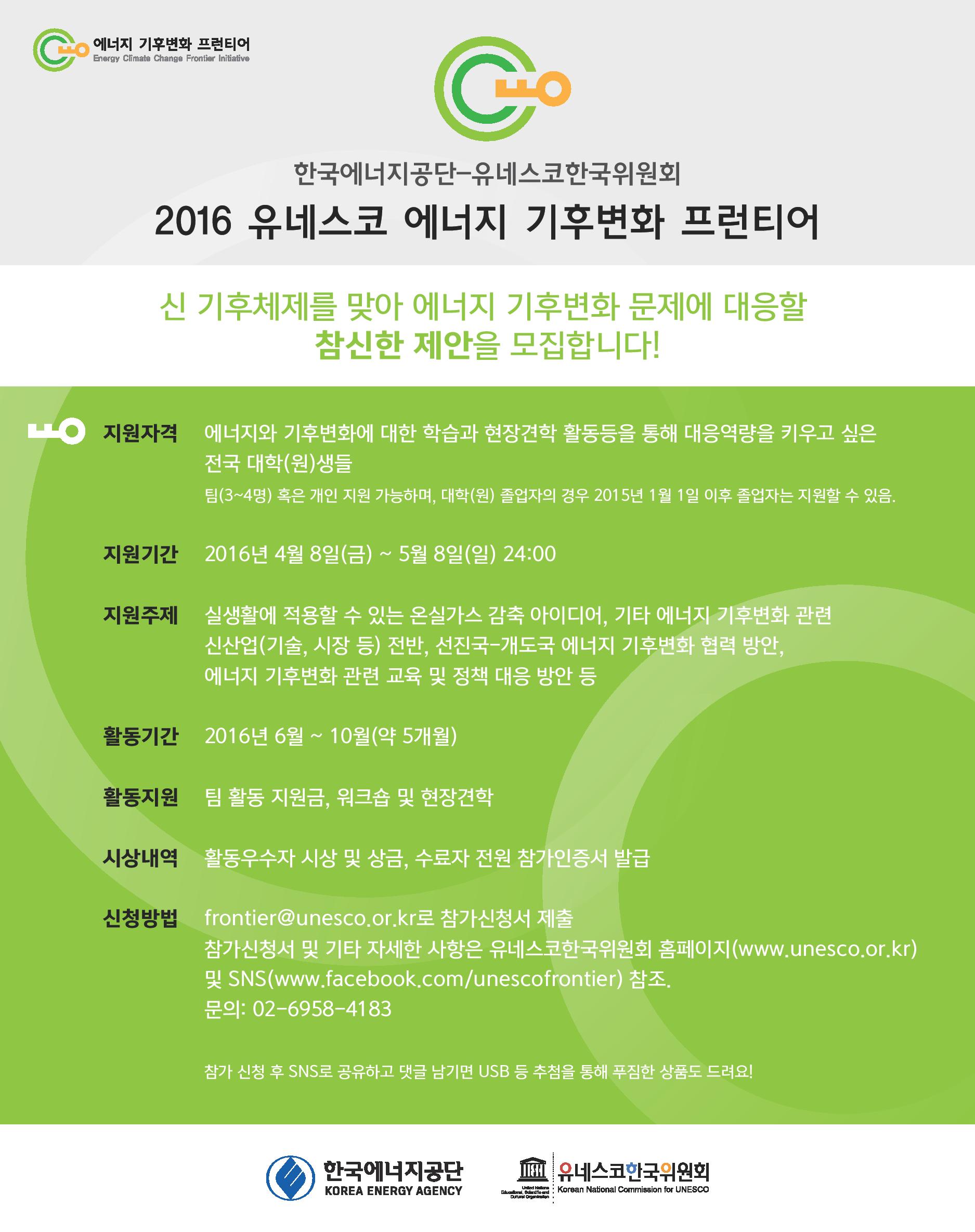 2016 유네스코 에너지 기후변화 프런티어 참가자 모집