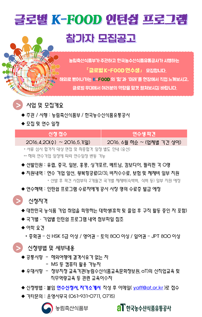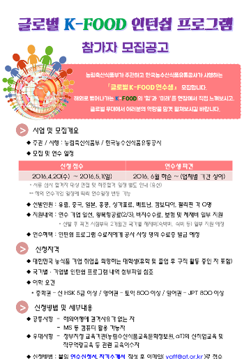 [한국농수산식품유통공사] 글로벌 K-FOOD 해외 인턴쉽 모집