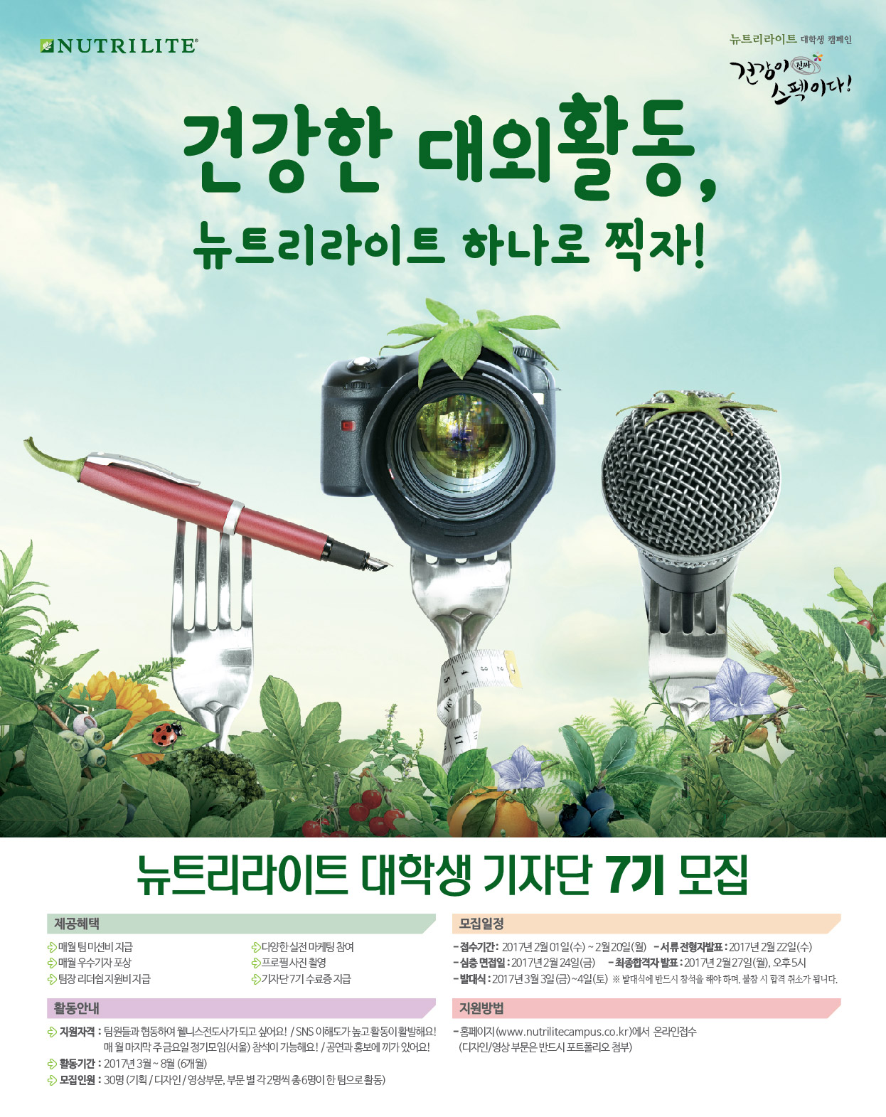 - 홈페이지(www.nutrilitecampus.co.kr)에서 온라인 접수 디자인/영상 부문은 반드시 포트폴리오 첨부