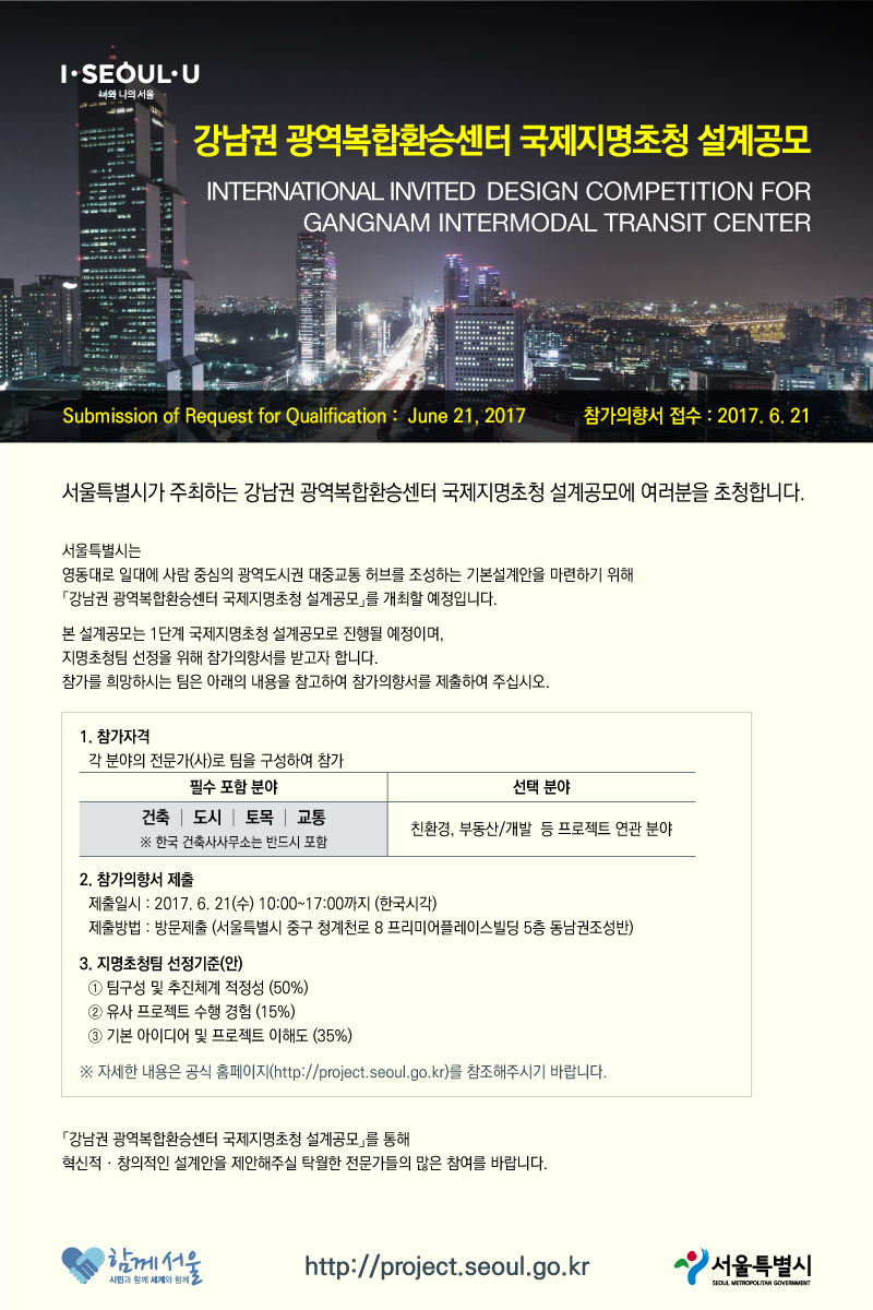 - 강남권 광역복합환승센터 국제지명초청 설계공모 - 참가의향서 모집(RFQ)