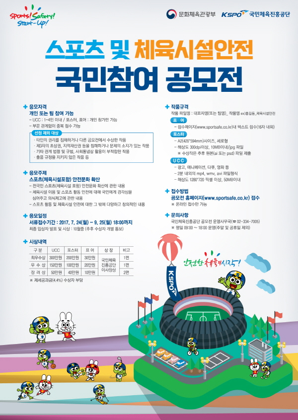 - 국민체육진흥공단 공모전 운영사무국 (Tel.02-334-7005 / E-mail. sportsafe@thinkcontest.com )