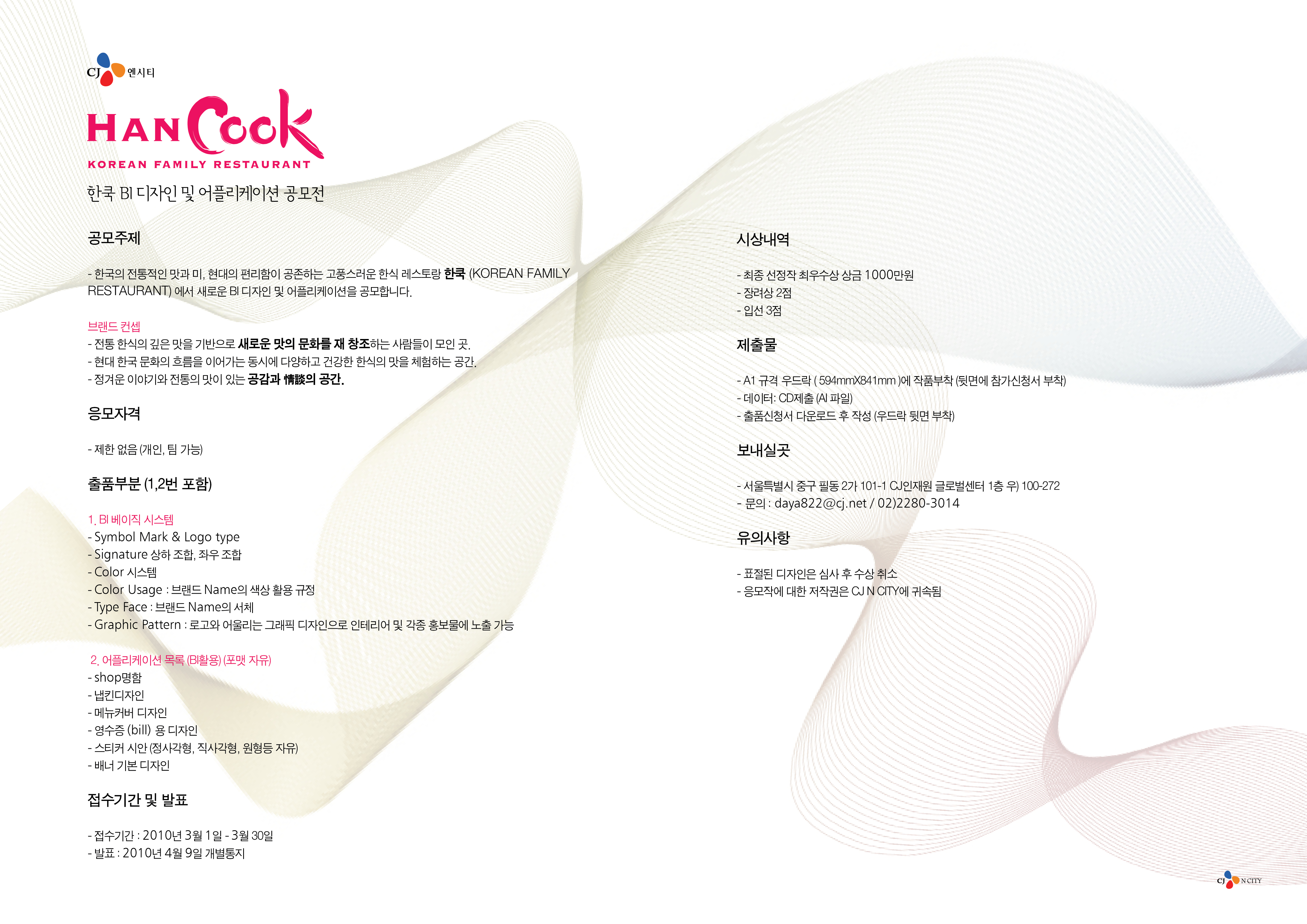 한쿡(KOREAN FAMILY RESTAURANT)에서 새로운 BI 디자인 및 어플리케이션을 공모합니다.