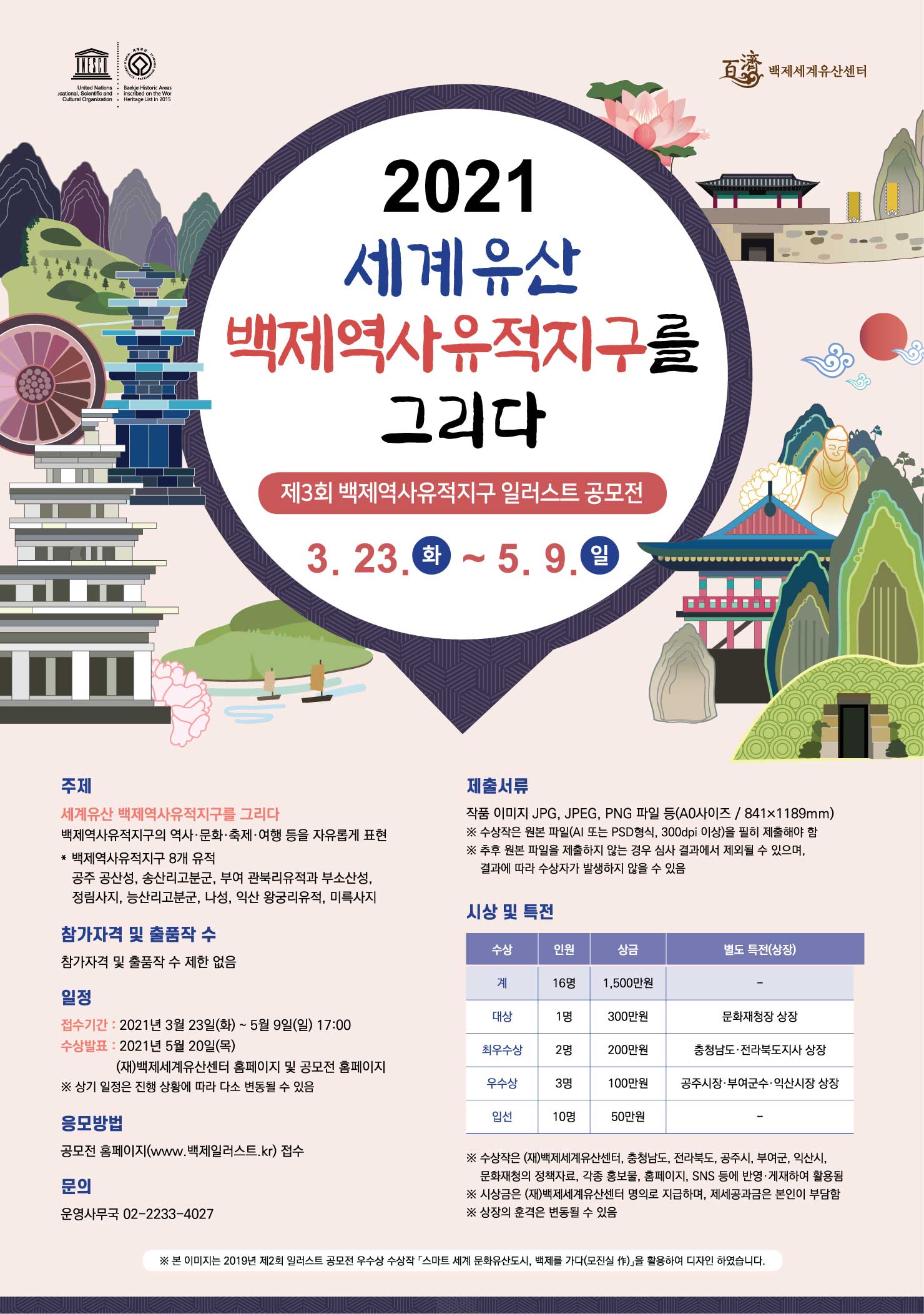 ※시상금은 (재)백제세계유산센터 명의로 지급하며, 제세공과금은 본인이 부담함