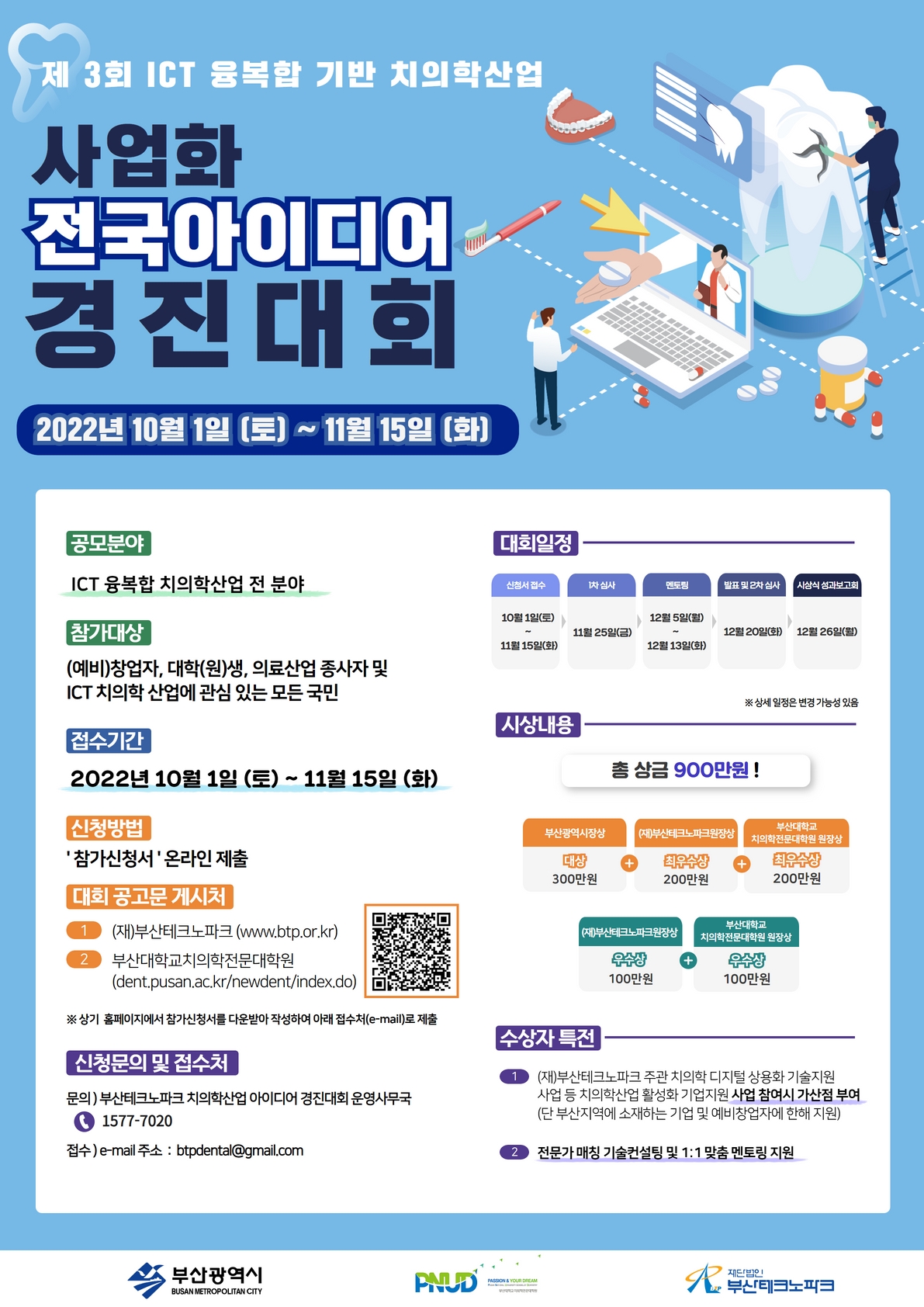 - 부산테크노파크 / 제3회 ICT융·복합 기반 치의학 산업 사업화 전국 아이디어 경진대회