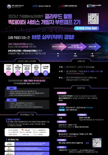 [2023 기업멤버십 SW캠프] 클라우드 활용 빅데이터 서비스 개발자 부트캠프 2기 교육생 모집