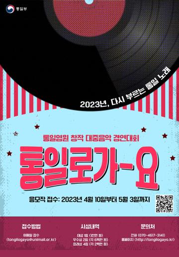 통일부는 한반도 평화통일의 염원을 담은 음악을 통해 국민들이 감동과 즐거움으로 통일에 접근할 수 있도록 ‘통일염원 대중음악 경연대회’를 2015년부터 개최해 오고 있습니다. 그동안 1,000곡이 넘는 창작 통일노래가 접수되었고, 총 41곡의 수상곡이 탄생했습니다.