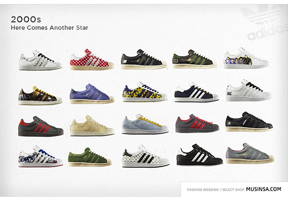 2000년대, 사람으로 치면 30대에 접어든 스니커즈는 새로운 전환점을 맞이한다. 특히 탄생 35주년인 2005년은 슈퍼스타의 역사에서 빼놓을 수 없는 한 해로 기록된다. 무려 35종류의 컬래버레이션 모델이 발표된 것이다. 음악과 패션, 예술의 아이콘들을 결합한 디자인으로, 저마다 확고한 개성을 지니고 있었다.