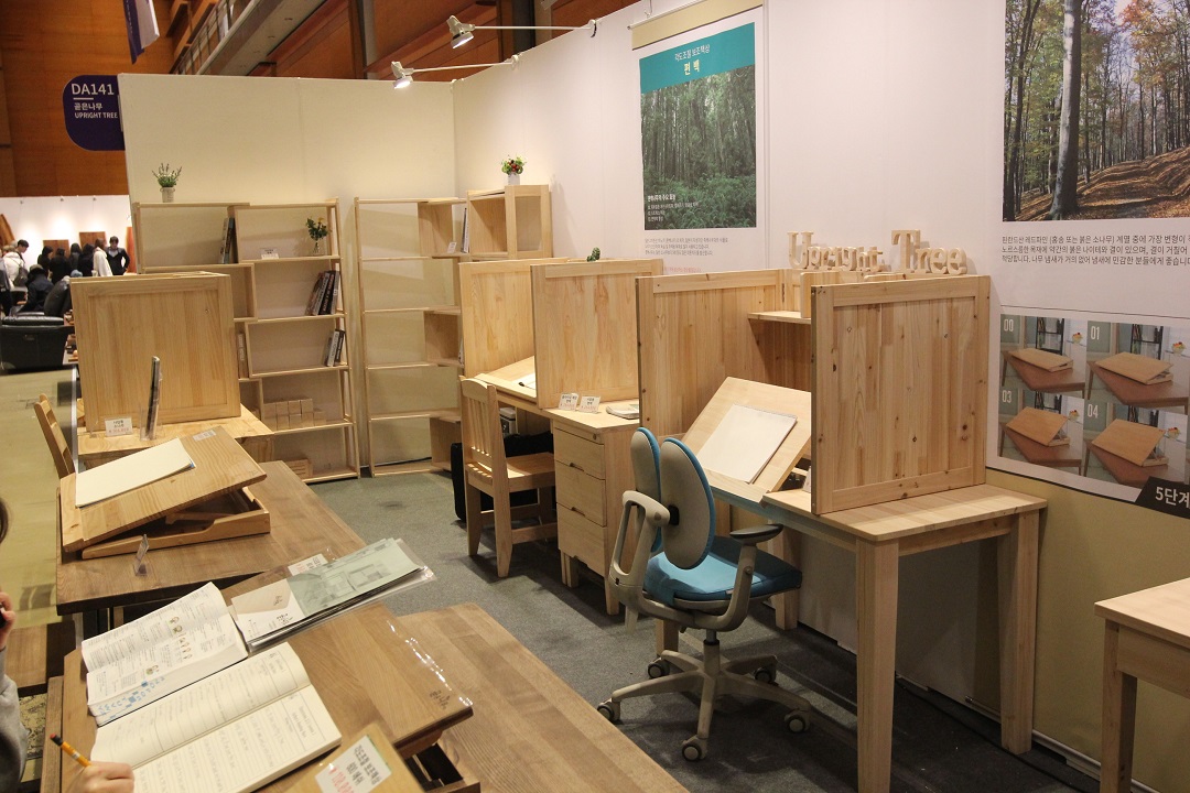 이번에는 금방이라도 책을 펼쳐야 할 것만 같은 분위기가 물씬 풍겼던 원목 학생 가구 브랜드 ‘곧은나무’ 부스다. 곧은나무는 곧게 성장하는 나무를 의미하는 사명으로 탄생됐다. 아이들이 험난한 세상에 나와 곧고 바르게 자라주기를 바라는 마음으로 곧은나무에서 탄생되는 모든 제품에 그 철학을 담아 아이들에게 곧고 바른 기운이 전달되도록 힘쓰겠다는 의미가 담겨있다.