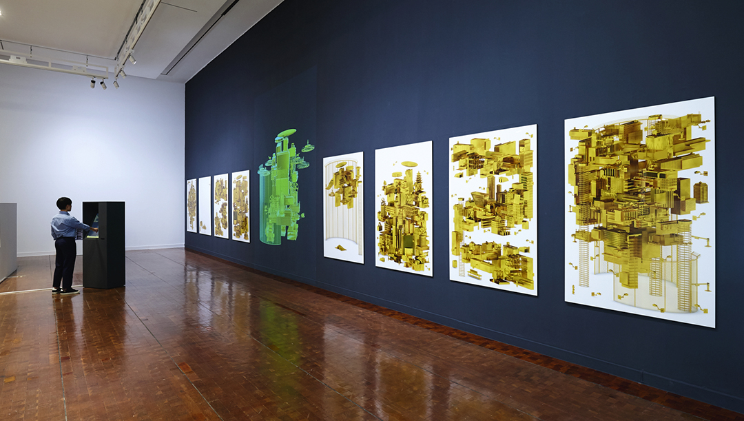 일상의 실천의 〈골든 실버 타운〉은 키오스크를 이용해 각종 시설을 선택, 실버타운을 구성해 볼 수 있다. 원하는 시설을 골라 실버타운을 설계하면 벽면에서 그 모습을 확인할 수 있고, 어마어마한 숫자가 프린트된 영수증도 출력할 수 있다.(사진제공: 서울시립미술관)
