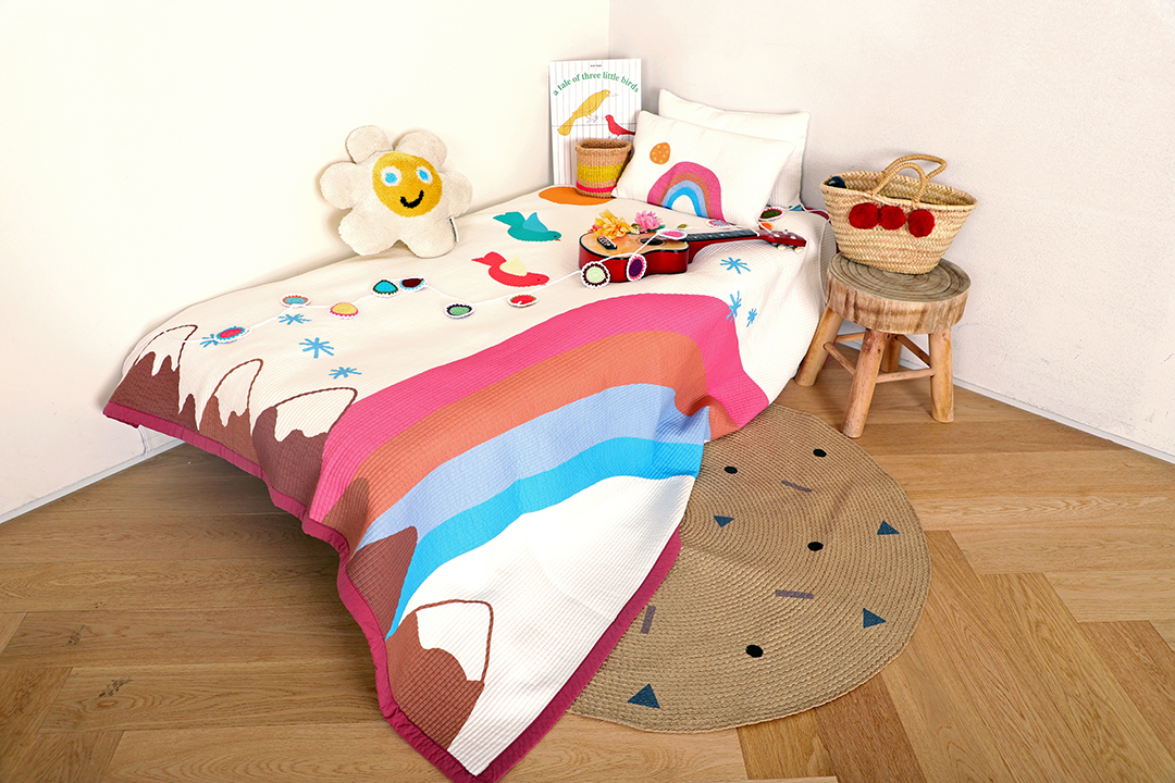 아직은 국내 백화점에 입점한 키즈 전문 침구 브랜드 수가 적은 편이라 경쟁력이 있다고 생각했어요. 거기에 앞서 감각적인 디자인과 최상의 소재를 겸비한 키즈 베딩 브랜드를 만드는 일이 중요하다고 느꼈고요. 아이 옷이나 신발에는 돈을 아낌없이 투자하면서 정작 침구를 살 때는 저렴한 가격과 디자인만 보고 구매하는 엄마들이 아직도 많아요. 보이지 않는 부분엔 돈을 절약하자는 마인드인데, 전 침구 선택에 있어서는 엄마들이 좀 더 전문성을 지닌 브랜드에서 안전성을 따지고 구매할 필요가 있다고 생각해요. 하루 12시간을 침대에서 보내는 아이들이 덮고, 물고 빨기도 하는 침구가 안전해야 한다는 건 너무나 당연한 거잖아요.