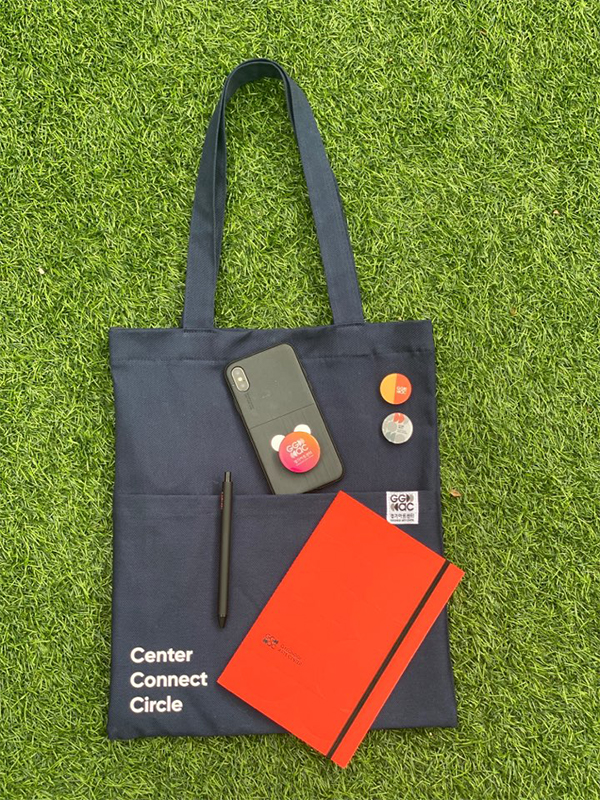 이에따라, 디자인 콘셉트 또한 ‘Expansion of Circle(원의 확장)’으로 설정하여, 원은 경기도 문화예술의 중심지로서의 가치를 상징하며 중심 원으로부터 펼쳐지는 반원의 반복과 색상 변화를 통해 관객들과 소통하며 그들의 일상 속으로 퍼져 나가는 모습을 표현하였습니다.