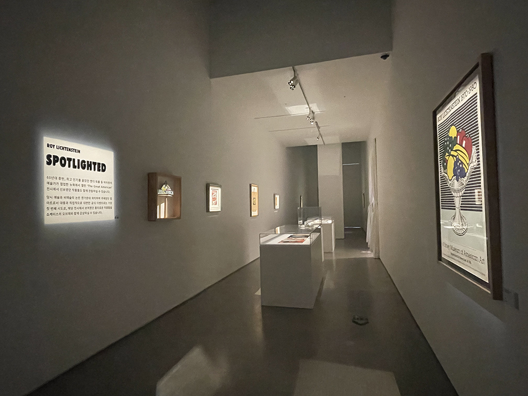 로이 리히텐슈타인은 미키를 좋아하던 아들을 위해 그려준 그림 <이것 좀 봐 미키 Look Mickey>(1961)로 고귀한 회화와 대중 미술로 나뉘어 있던 예술의 이분법적 경계를 허물고 새로운 현대 미술의 중심에 서게 됐는데, 전시장에서는 이러한 그의 초창기 팝아트 작품부터 콜라보레이션 공예품 등을 볼 수 있다.