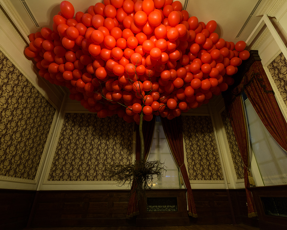 양아치, <성진은 복숭아꽃 한 가지를 꺾어 팔 선녀에게 던지는데>, 2016, Installation, dimensions variable