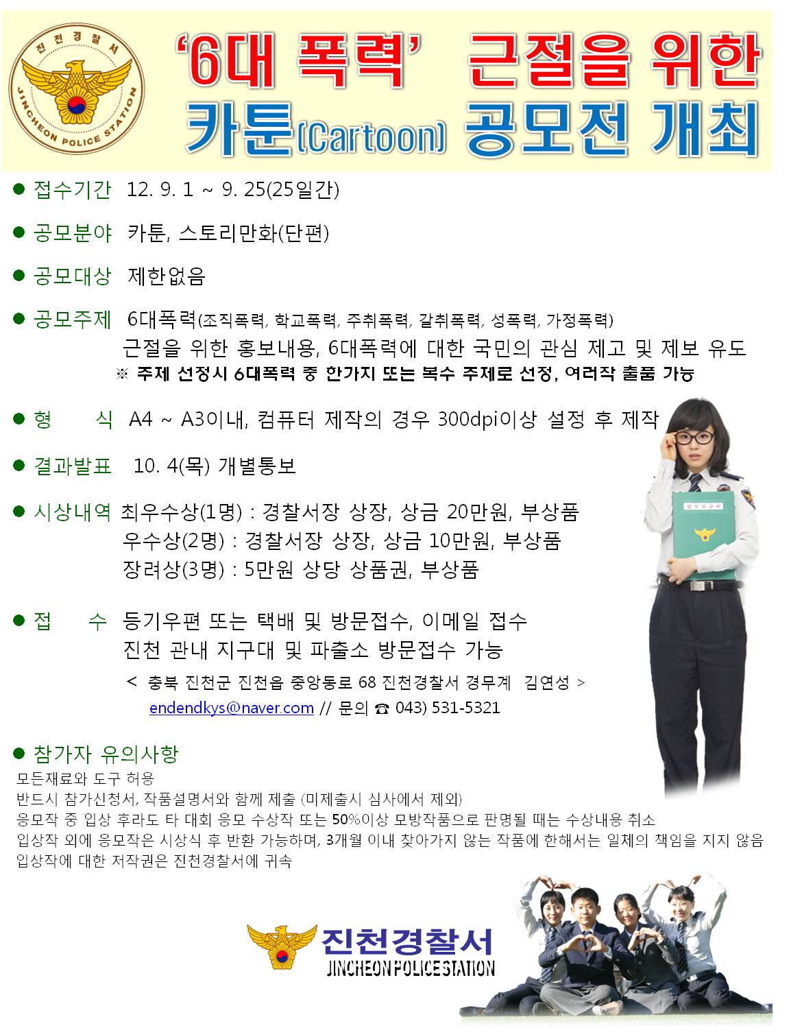 ▶ 접 수 - 등기우편 또는 택배 및 방문접수, 이메일 접수 모두가능 - 진천 관내 지구대 및 파출소 방문접수 가능 < 충북 진천군 진천읍 중앙동로 68 진천경찰서 경무계 김연성, 우편번호 : 365-807> endendkys@naver.com