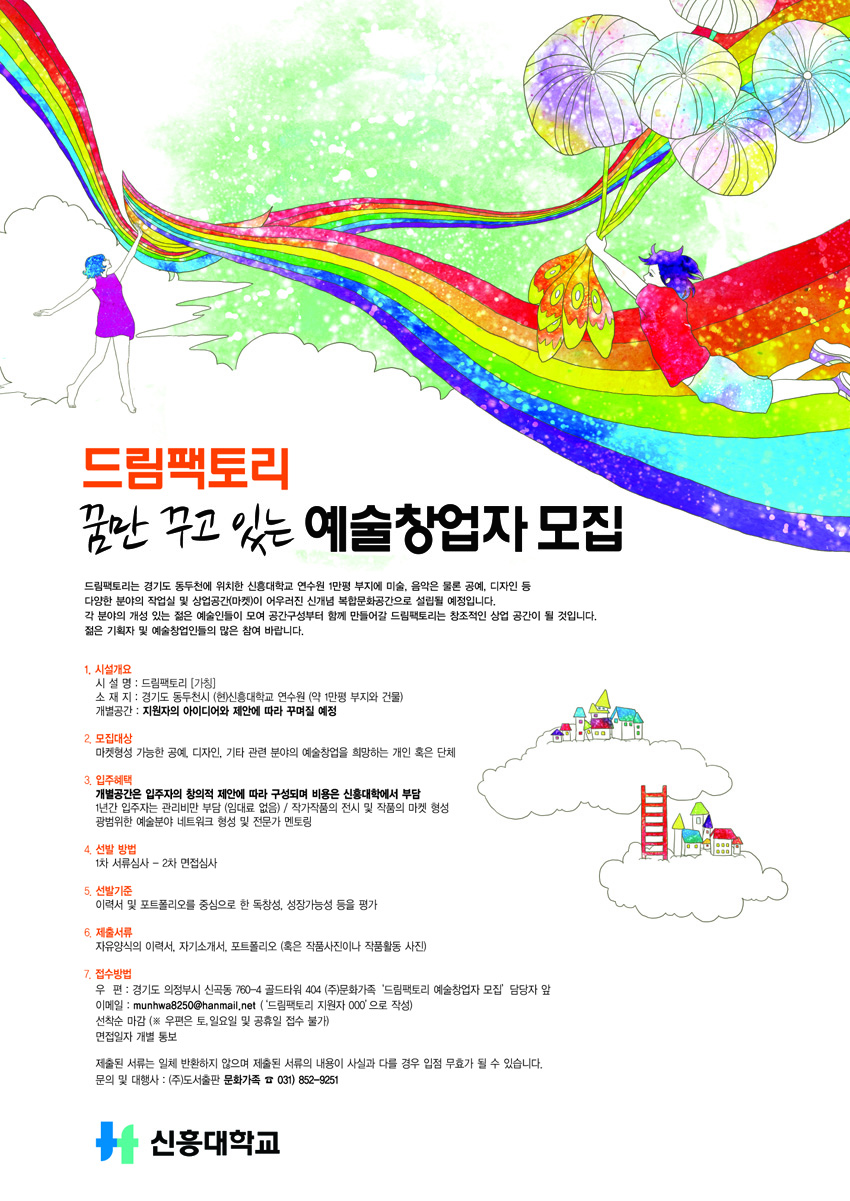 -이메일 접수 : munhwa8250@hanmail.net (제목은‘드림팩토리 지원자 000’으로 작성)