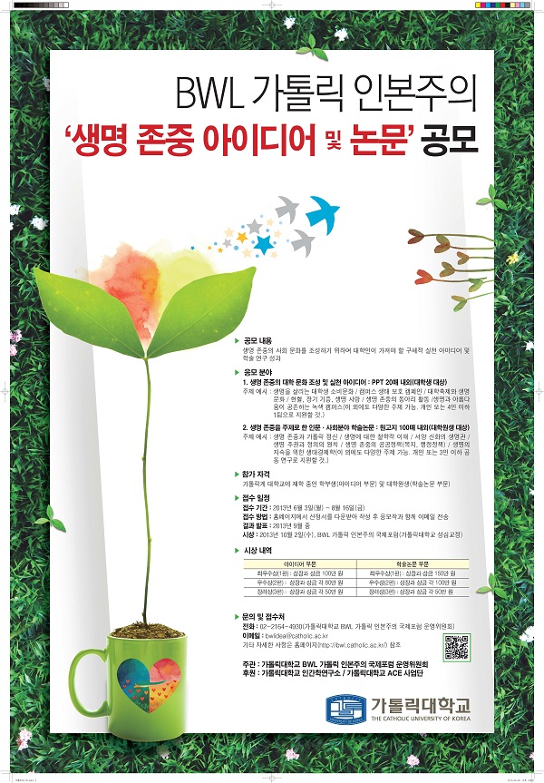 - 내용 : ‘생명 존중’을 주제로 한 학술논문(인문ㆍ사회분야에 한함)