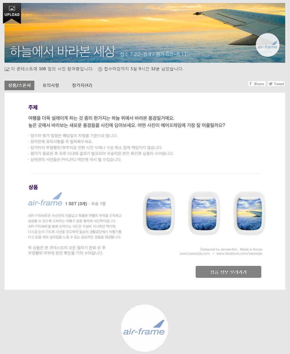 - PHURU 홈페이지에 방문하여 하늘에서 바라본 세상 사진 공모전 선택, 업로드 http://phuru.com