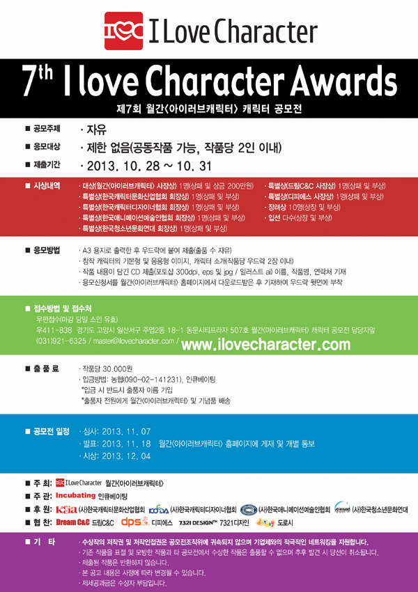 - 발표 : 2013.11.18 월간< 아이러브캐릭터> 홈페이지에 게재 및 개별 통보
