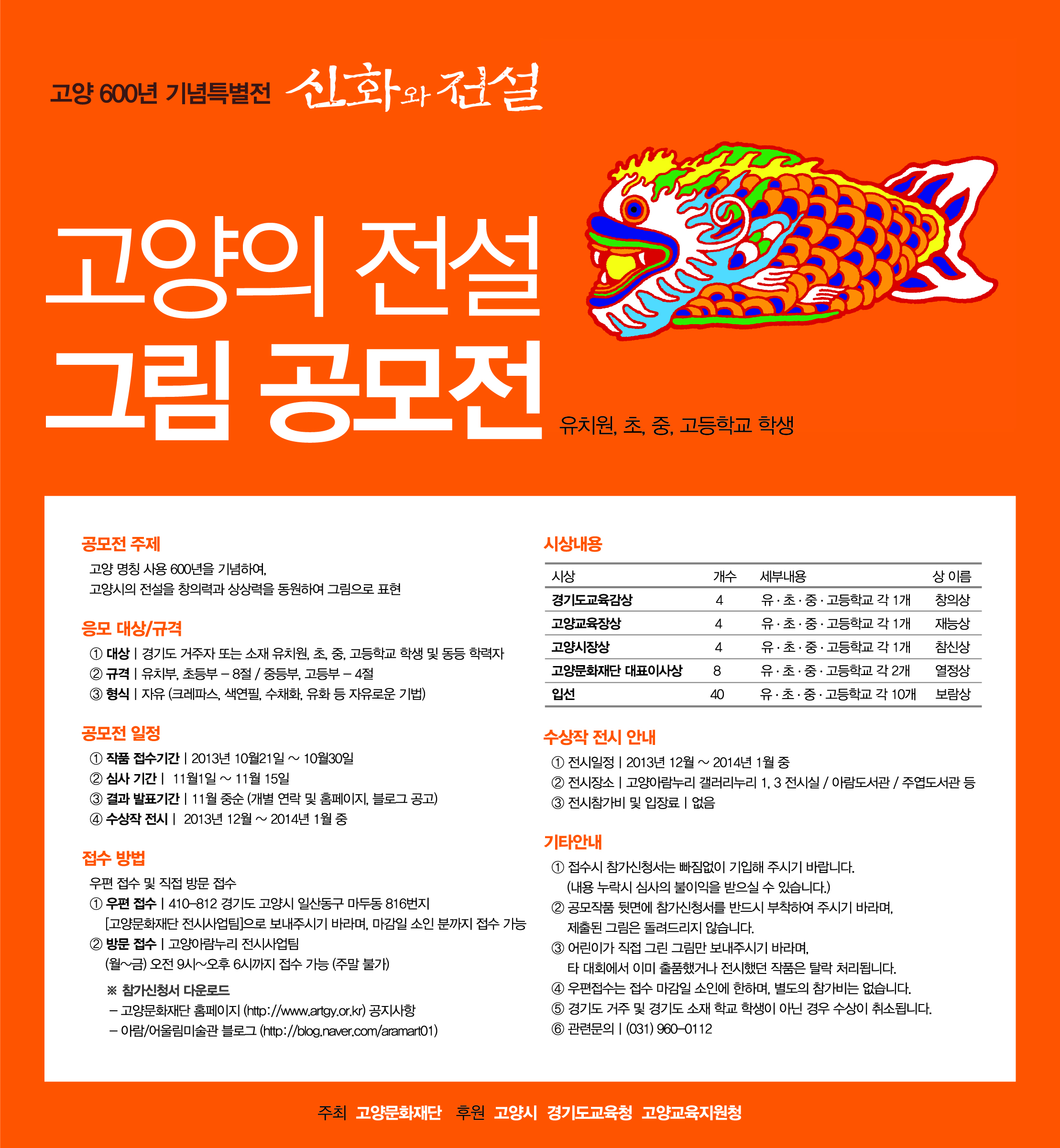 - 경기도교육감상, 고양교육장상, 고양시장상, 고양문화재단 대표이사상, 입선 등 총 60명 시상