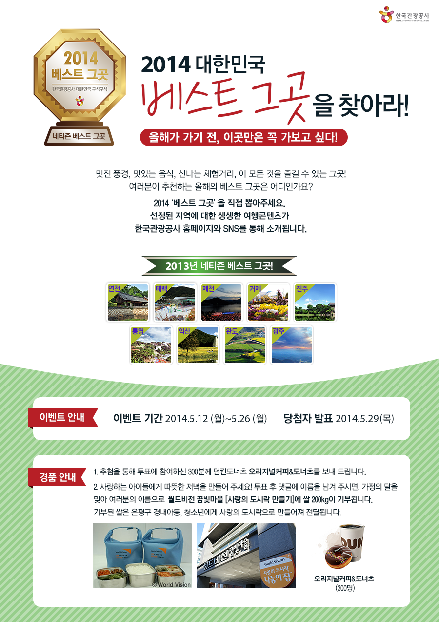 [한국관광공사 이벤트] 2014 대한민국 베스트 그곳을 찾아라!