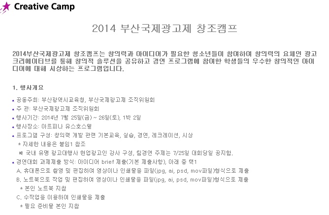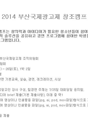 2014부산국제광고제 창조캠프는 창의력과 아이디어가 필요한 청소년들이 참여하여