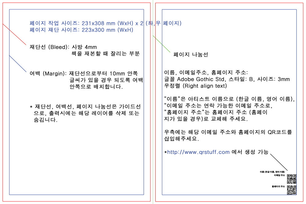 “책이라는 매체를 통해 아티스트가 ‘직접’ 자신을 표현하고 홍보할 수 있는 기회” “한국 주요서점 및 미국에서 판매 예정” “언론 보도와 온라인 홍보 효과” CICA 미술관의 아트북 프로젝트 “아트 옐로북”은 기존 책의 형식을 탈피하여 “아트”로서 책이라는 매체를 접근합니다. 전시가 공간을 통해 작품을 경험하게 하는 반면, 책은 쉽게 가지고 다닐 수 있고, 여러 사람이 동시에 공유할 수 있다는 점에서 전시와는 또 다른 매력이 있습니다. 또한 온라인 매체와는 다르게 직접 만지고 경험할 수 있다는 점에서 아날로그적인 매력도 있는 독특한 매체이기도 합니다. 큰 기업, 큰 목소리에 의한 대중문화가 만연한 문화 풍토 속에서 아티스트 개개인의 작은 목소리와 개성을 표현하고 또한 접해보기는 점점 힘들어지고 있는 듯 합니다. 본 프로젝트는 “책”이라는 매체를 통해 아티스트가 직접 자신을 표현하고 홍보할 수 있는 장을 마련하고자 합니다. 2015년 하반기에 출간 될 “아트 옐로북 코리아 2015”는 시리즈 북의 첫 호로 한국에 거주하거나 외국에 거주하는 한국 작가를 대상으로 100명의 감각있는 아티스트를 모집합니다. 출판된 책은 한국 주요서점 및 미국에서 판매될 예정입니다. 또한 선정된 작가의 일부는 CICA 미술관에서 전시의 기회가 주어집니다. 아티스트 한 명당 한 장의 공간이 주어지며, 정해진 형식이나 제약은 없습니다. 단, 해당 작가에 대해 더 알아보고 싶은 독자를 위해 두 번째 페이지 하단에 작가의 이름과 이메일 주소, 홈페이지 및 QR코드가 표시됩니다. 이력서, 포트폴리오 등의 추가 서류는 받지 않습니다. 오로지 한 장의 지면을 통해 자신을 표현해주세요. 글, 그림, 사진 등 어떠한 형태도 무관합니다. 모집기간: 2015. 5. 4 – 2015. 5.31 참가방법: 1. CICA미술관 홈페이지 (http://cicamuseum.com/art_yellowbook_korea_2015)에서 페이지 템플릿 “Art_Yellowbook_Template.ai” 파일이나 “Art_Yellowbook_Template.psd” 파일을 다운받습니다. 일러스트레이터에서 작업시 AI 파일을, 포토샵에서 작업시 PSD 파일을 다운받으세요. 2. 일러스트레이터 혹은 포토샵에서 원하는 이미지와 글자를 배치합니다. 책이 한국과 미국에서 판매 예정인 관계로, 글이 있을 경우 가급적 영어 한글 버젼을 동시에 실어주세요. 영어 한글 중에 한 버젼만 싣고 싶을 경우, 번역을 실은 웹사이트 주소와 QR 코드를 페이지에 추가해주세요. 3. 템플릿에 표시된 “이름”에는 본인의 이름을 (한글 이름, 영문 이름), “이메일”에는 본인의 이메일을, “웹사이트”에는 (웹사이트가 있을 경우에 해당) 웹사이트 주소와 해당 QR 코드를 삽입해주세요. 4. 편집이 되면 “Save As”를 눌러 작업 파일을 저장합니다. “Art_Yellowbook_Name(본인 영문이름)”으로 저장해주세요. 일러스트레이터의 경우 확장자는 AI, 포토샵은 PSD 파일로 저장합니다. 5. 똑같은 방식으로 JPG 형식으로 저장해주세요. 화질은 최상(Maximum), 화소는 300 dpi로 설정합니다. 6. 작업파일 (AI 이나 PSD)과 JPG (초고화질, 300 dpi) 파일을 cicamuseum@gmail.com로 보내주세요. * 모든 이미지의 색상은 CMYK 모드로, 화소는 300 dpi로 진행해주세요. * 사방 4mm으로 여백을 남겨주세요. 재본시 잘리는 부분입니다. * 글자는 꼭 “윤곽선 만들기”나 “곡선으로 변환”해주세요. (일러스트레이터: Create Outline) * 검은색 글자가 있을 경우, “C=0, M=0, Y=0, K=100” 로 설정해주세요. 선정: 선정된 작가에게 개별적으로 이메일을 통해 통보합니다. 선정된 작가는 5만원의 광고 및 출판 비용을 지불하게 됩니다. 책은 2015년 하반기에 출시 될 예정입니다. 실험적이고 감각적인 아티스트분들의 참여를 기다립니다. 문의사항이 있으시면 cicamuseum@gmail.com로 이메일 주세요. 전화 문의는 받지 않습니다.