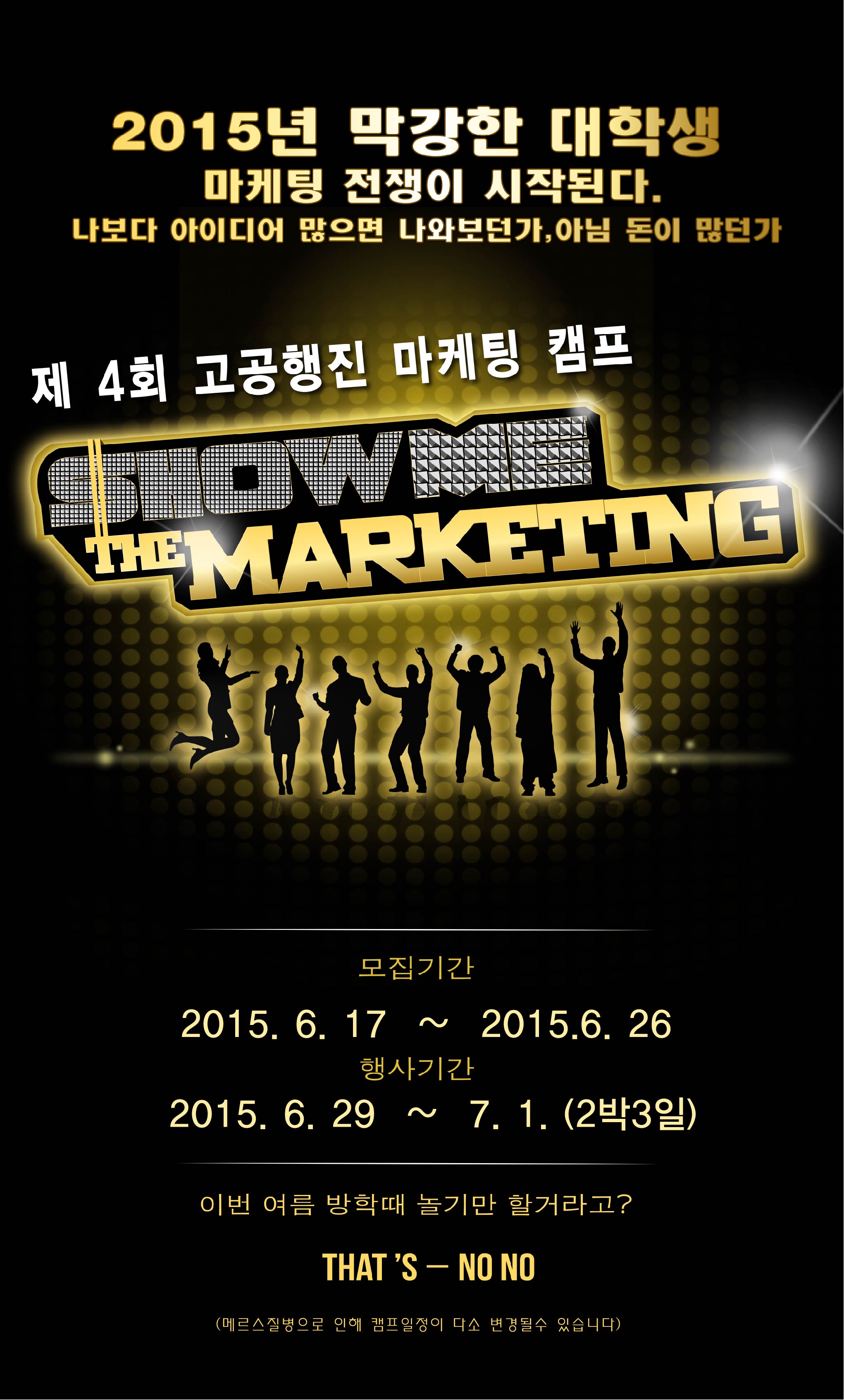 - 2박 3일간 합숙을 통하여 최고의 마케터를 뽑는다 더욱 새롭게 돌아온 제4회 고공행진 마케팅 캠프 Show me the marketing