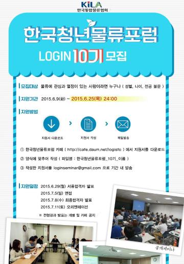 저희 한국청년물류포럼에서 2015년 하반기 포럼을 이끌어나갈 LogIn 10기 운영진을 모집합니다. ^^