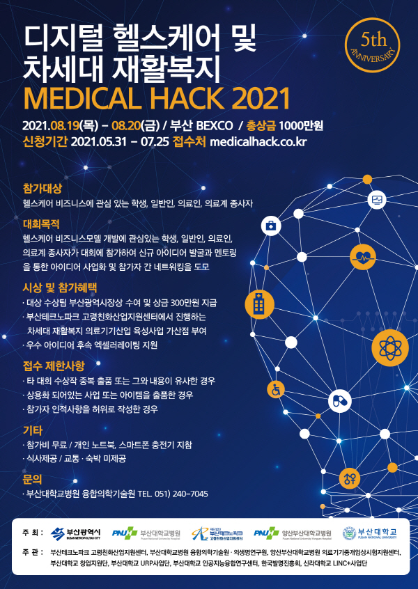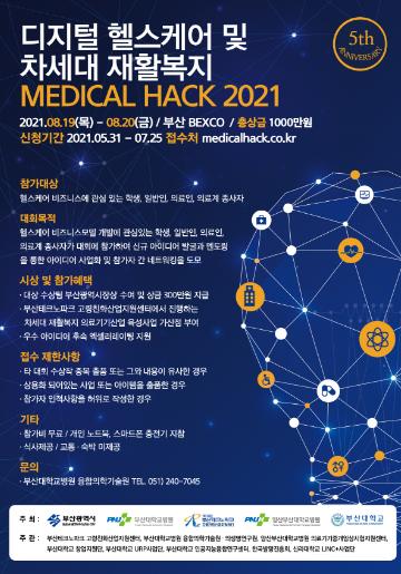 - 행 사 명 : 디지털 의료·차세대 재활복지『MEDICAL HACK 2020』 - 일 시 : 2021. 8. 19.(목) 13시 ~ 8. 20.(금) 15시 / 2일 간 개최 - 장 소 : 부산 BEXCO