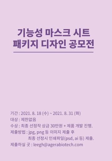 신제품 마스크 시트를 개발함에 있어, 브랜드 가치와 제품의 특징을 잘 알릴 수 있는 새로운 디자인을 채택하고자 본 공모전을 진행합니다.