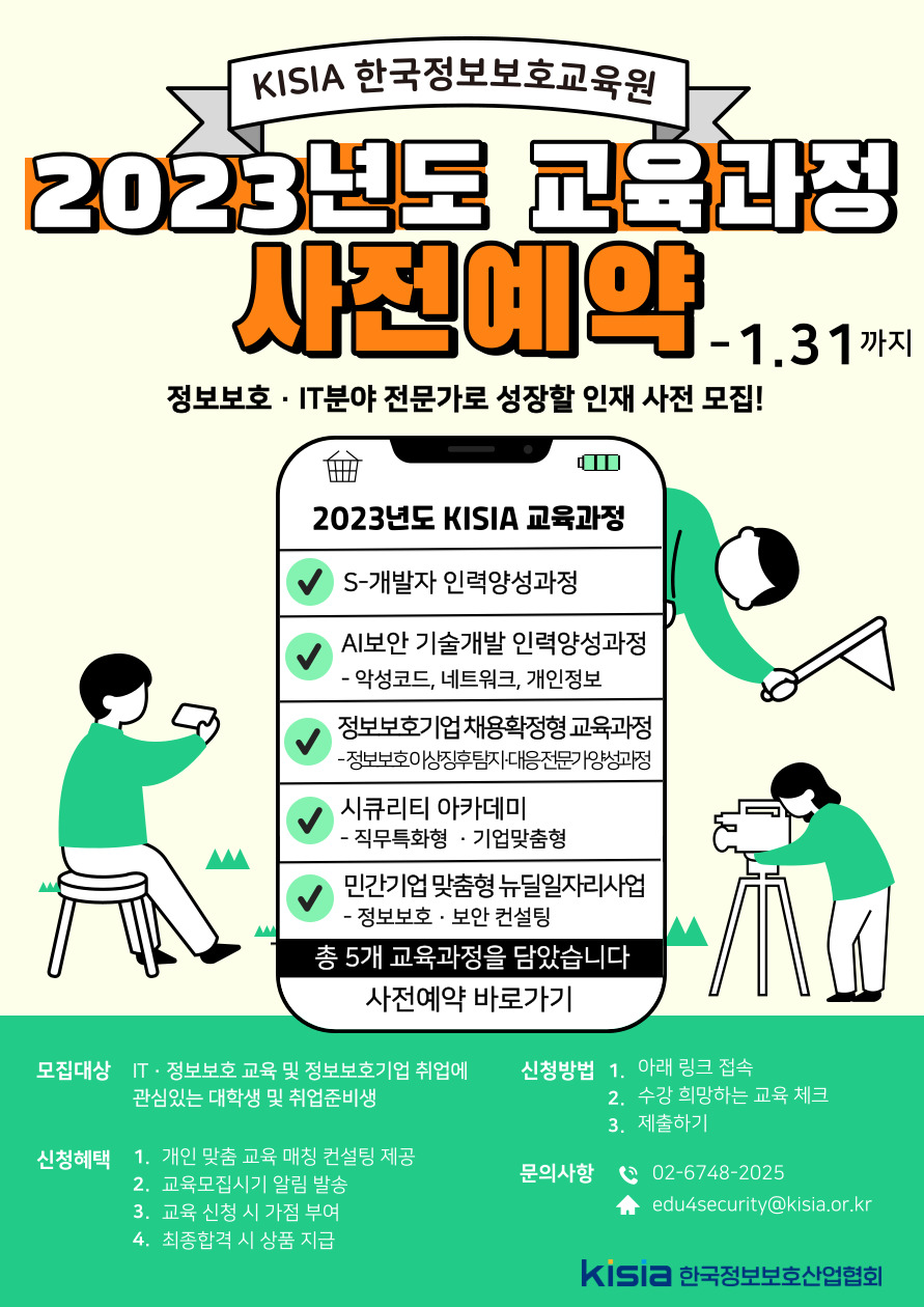 #한국정보보호산업협회 #KISIA #정보보호 #사이버보안 #보안 #교육 #교육과정 #취업준비 #취준 #공부 #취업 #취뽀 #사전예약