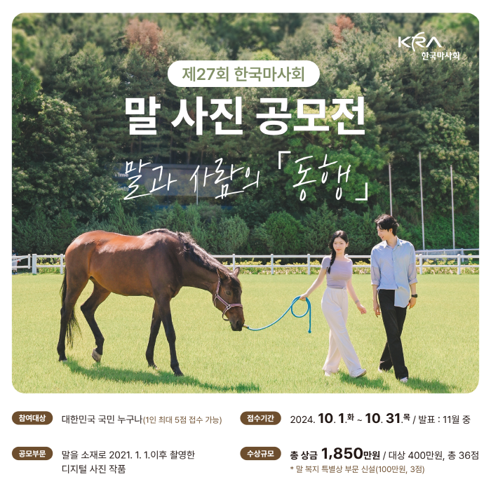 * 응모작에 대한 일체의 법적 책임은 응모자에게 있으며, 수상 후 제3자의 권리 침해 등 분쟁 발생 시 한국마사회는 책임을 지지 않음