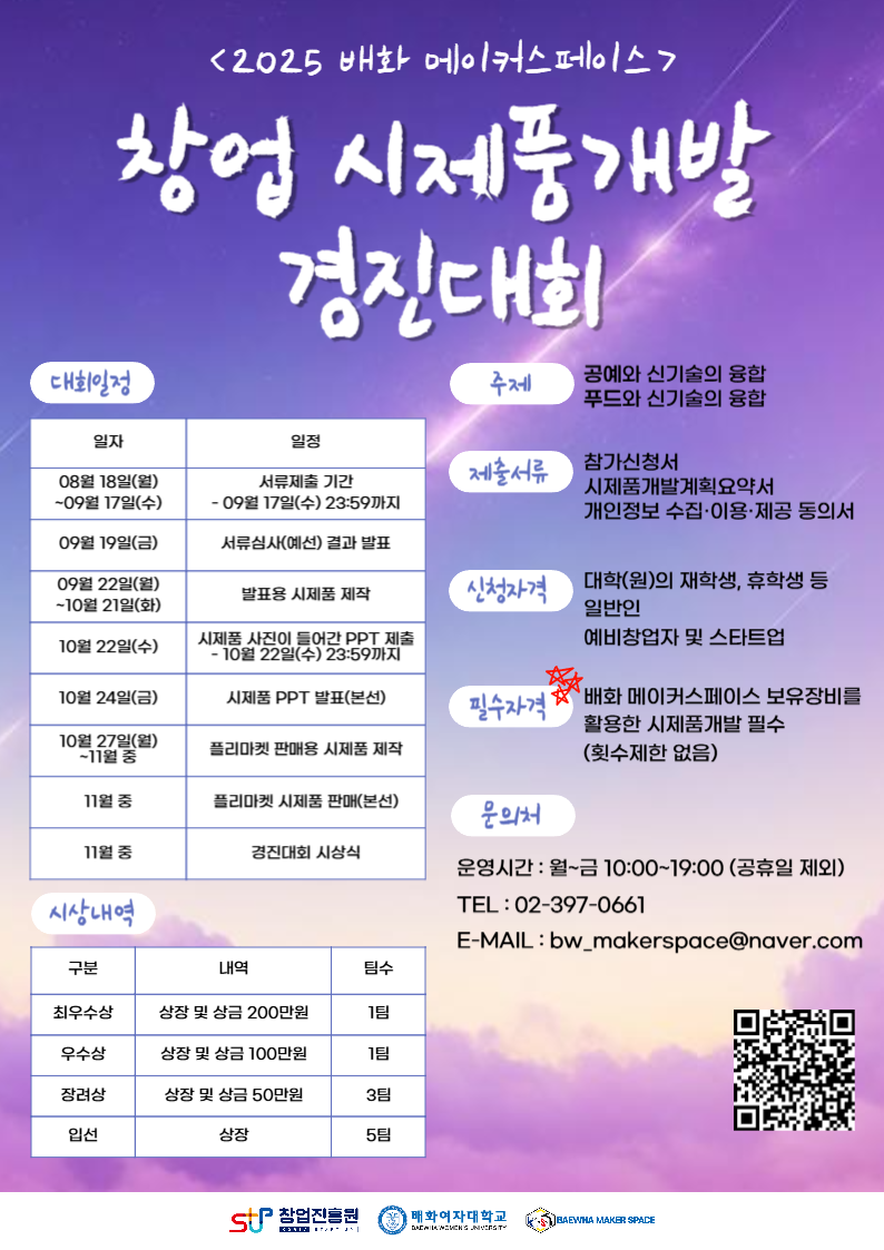 ▷ 공통자격: 배화 메이커스페이스 보유 장비를 활용하여 시제품개발 필수(횟수 제한없음)