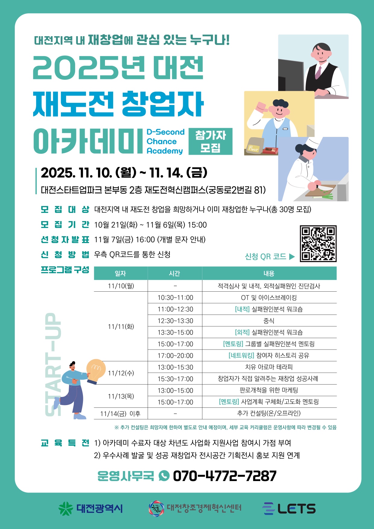 - 행사명: 2025년 대전 재도전 창업자 아카데미(D-Second Chance Academy)
