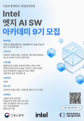 - 비전과 AI머신러닝, Edge AI 프로그래밍, 기업 실무 프로젝트 등